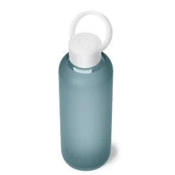 To use it you’ll first screw the cap onto the bottle, then insert the straw through the clear silicone valve. This cap is splash resistant. It will keep your water in its place during light turbulence on a flight somewhere fabulous, but if tipped over in your bag some water may spill out. It’s dishwasher safe on the top rack like everything we make, and the valve is removable so you can wash all the parts thoroughly for zero yuck.