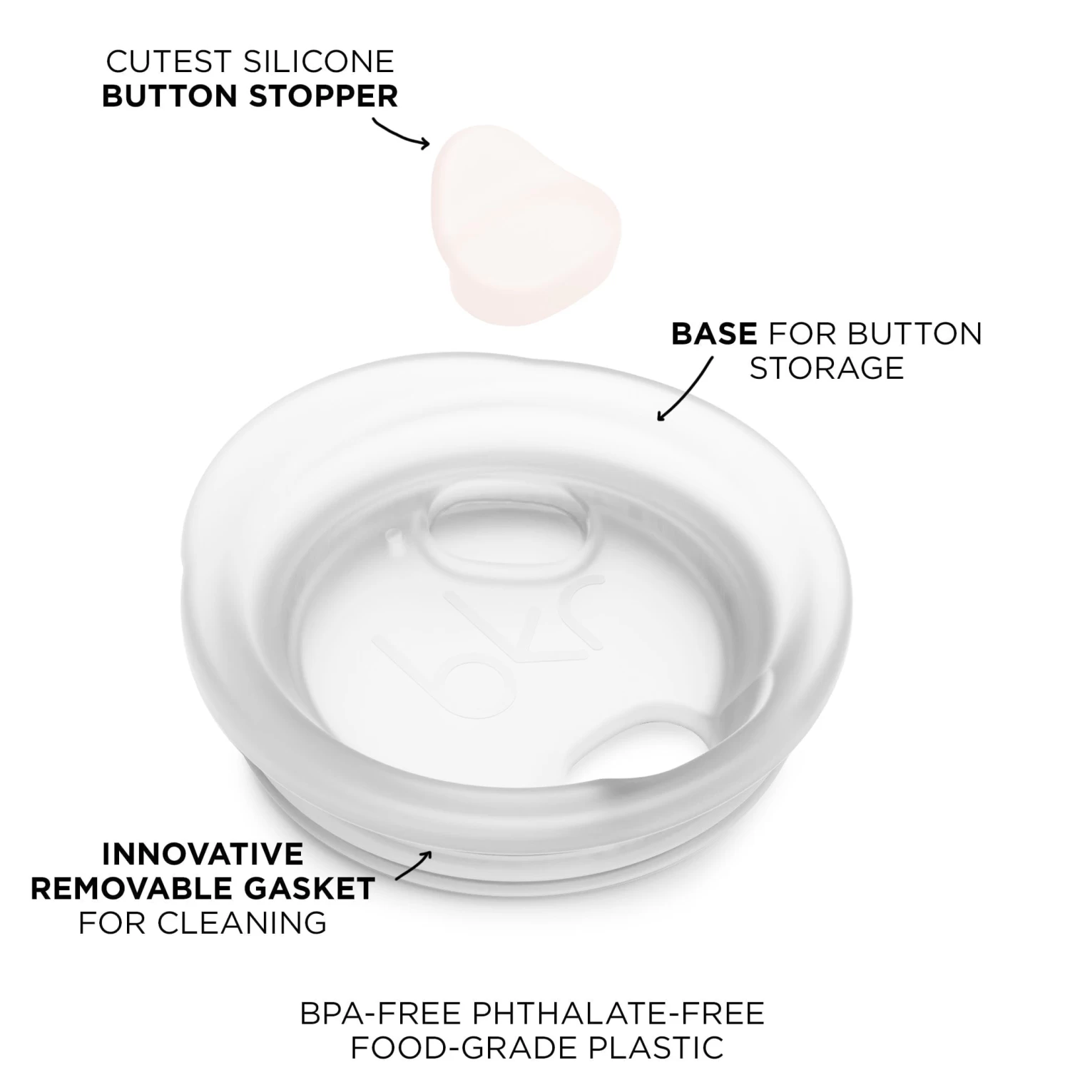 – Splash resistant. Pop and lock the removable silicone bkr button from its base on the cap into the opening to help prevent splashback as you run around town